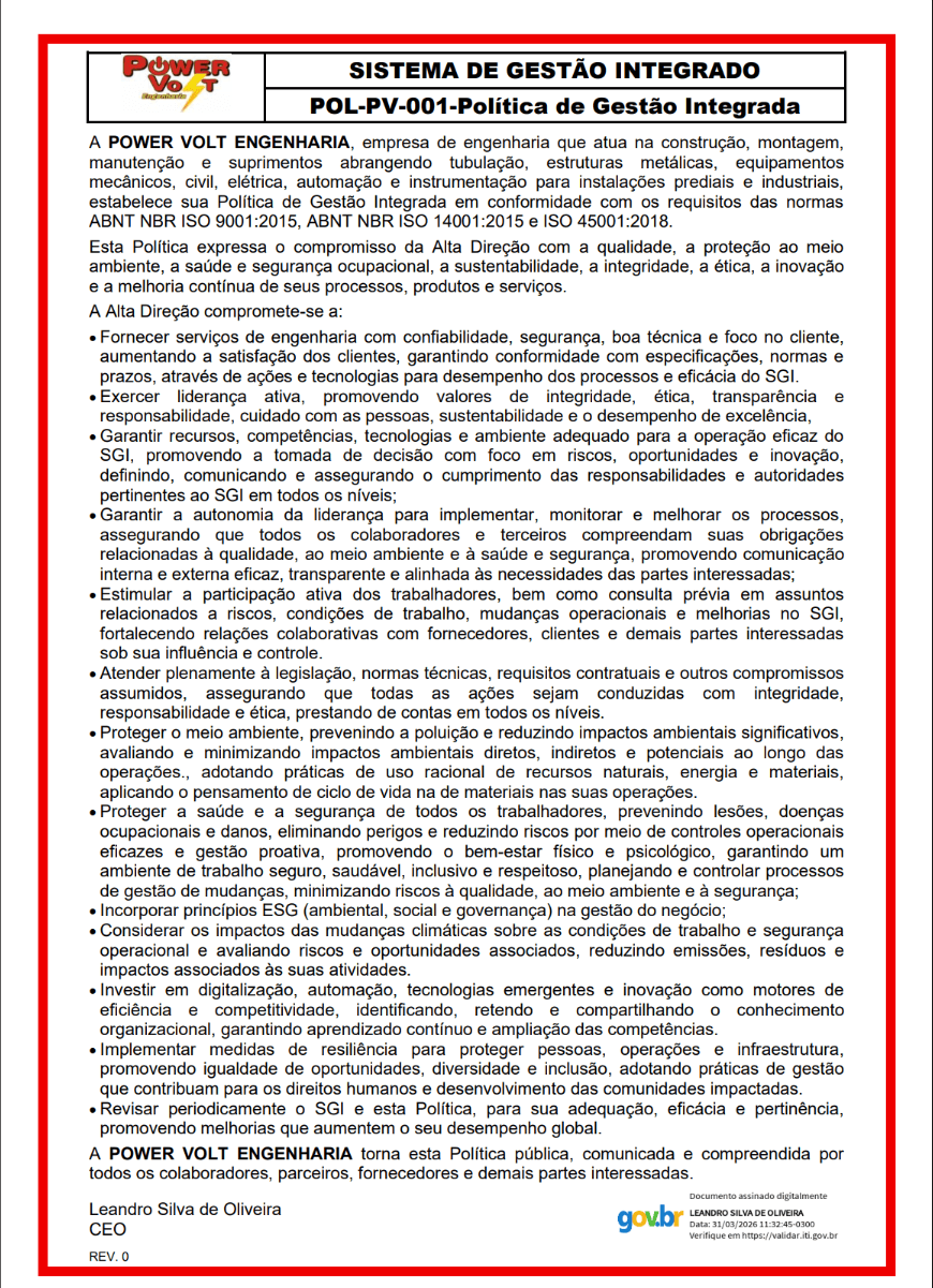 Acreditamos que o desenvolvimento sustentável, a valorização das pessoas e o comportamento ético são pilares fundamentais para que possamos alcançar níveis cada vez mais altos de excelência empresarial.